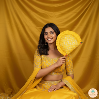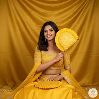 Yellow Cross Stripes Punjabi Pakhi (Hand Fans) - Pack of 2