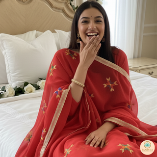 The Royal Crimson Star Phulkari Dupatta