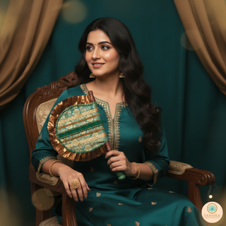 Punjabi Pakhi with Golden-Mint Decorated Patterns (Hand-Fan - Single Piece)