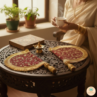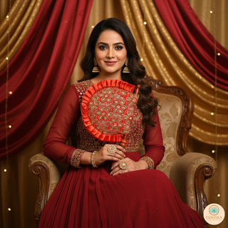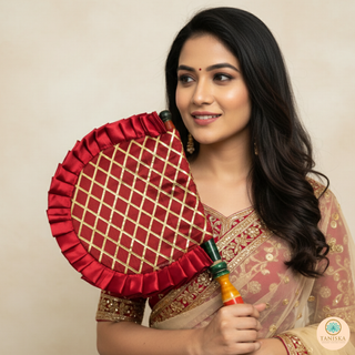 Maroon Punjabi Pakhi (Hand Fans) - Pack of 2