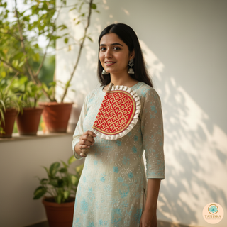 Red Punjabi Pakhi (Hand Fans) - Pack of 2