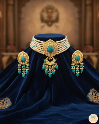 MRINAL Traditional Kundan Necklace Set - Turquoise/White