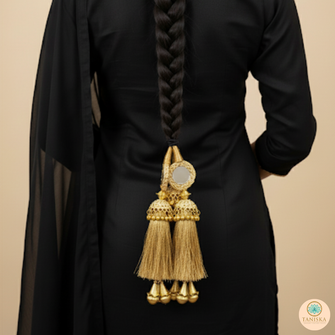 Complete your traditional look with our exquisite Sohni Parandi. Each piece is a tribute to Punjabi heritage, meticulously crafted to add a touch of timeless beauty to your hairstyle. Perfectly paired with our Phulkari dupattas, these parandis are a celebration of artistry and tradition.