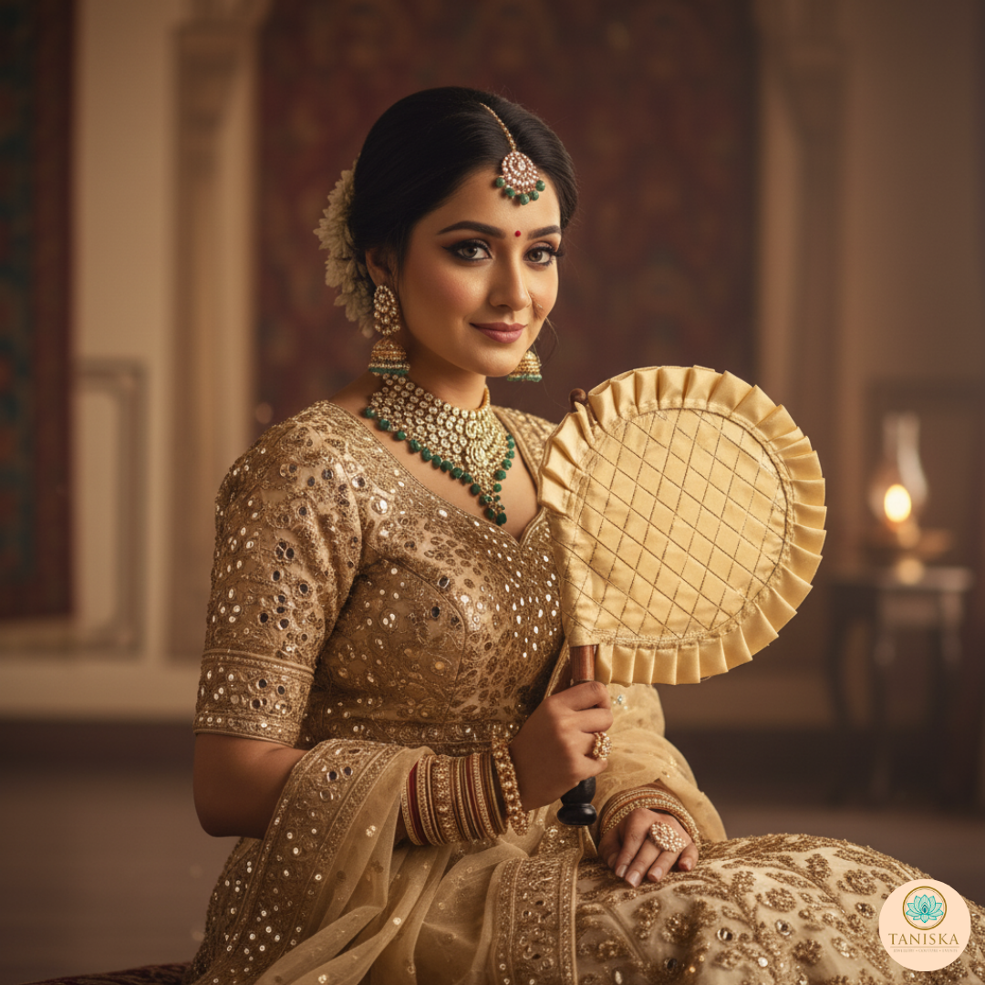 This beautifully decorated traditional punjabi pakhi (hand fan) can now be purchased online at: www.taniska.com. The elegant work done on this hand fan gives it a perfect look to rock any punjabi festival! Perfect for giddha dance performances on stage as well. This pakhi is most commonly also used during the shagan ceremony within the punjabi weddings, maiyan ceremonies as well as mehndi nights. The pakhis are also a perfect choice to style your home with as well which give a traditional authentic punjabi feel to any room. And of course you can also use the hand fan to cool yourself during the very hot climates when the suns out of course!!!