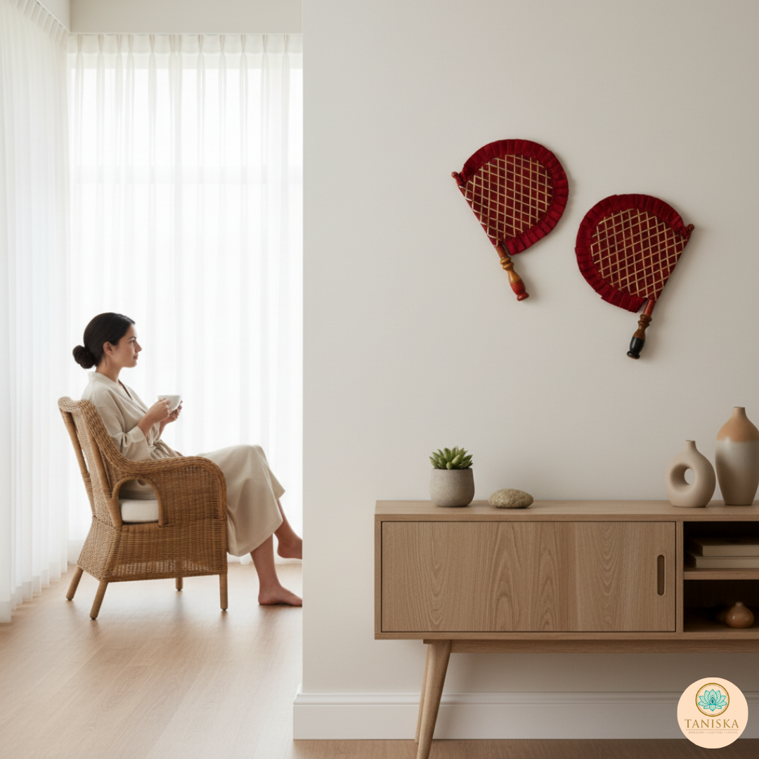 Maroon Cross Stripes Punjabi Pakhi (Hand Fans) - Pack of 2