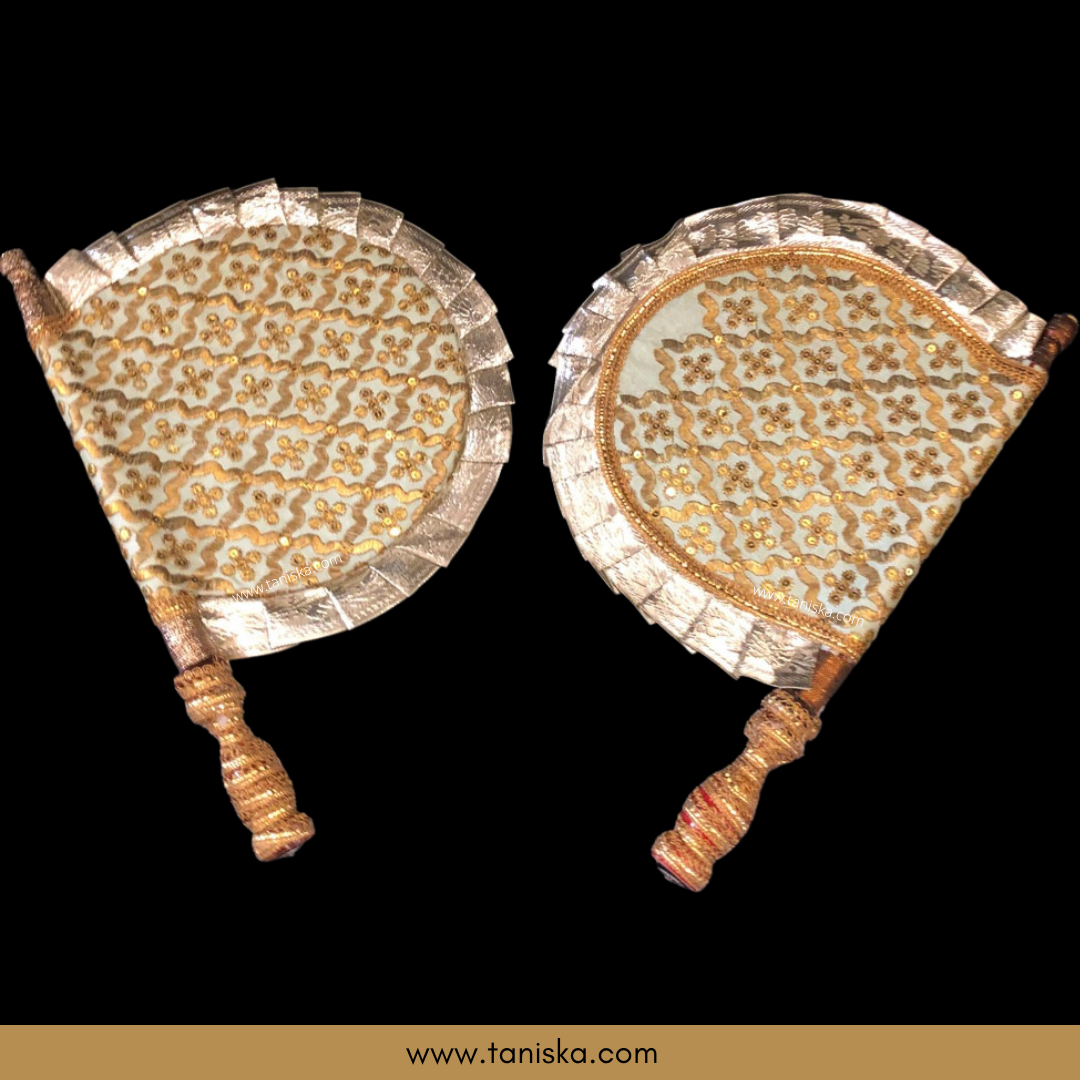 This beautifully decorated traditional punjabi pakhi (hand fan) can now be purchased online at: www.taniska.com. The elegant work done on this hand fan gives it a perfect look to rock any punjabi festival! Perfect for giddha dance performances on stage as well. This pakhi is most commonly also used during the shagan ceremony within the punjabi weddings, maiyan ceremonies as well as mehndi nights. The pakhis are also a perfect choice to style your home with as well which give a traditional authentic punjabi feel to any room. And of course you can also use the hand fan to cool yourself during the very hot climates when the suns out of course!!!