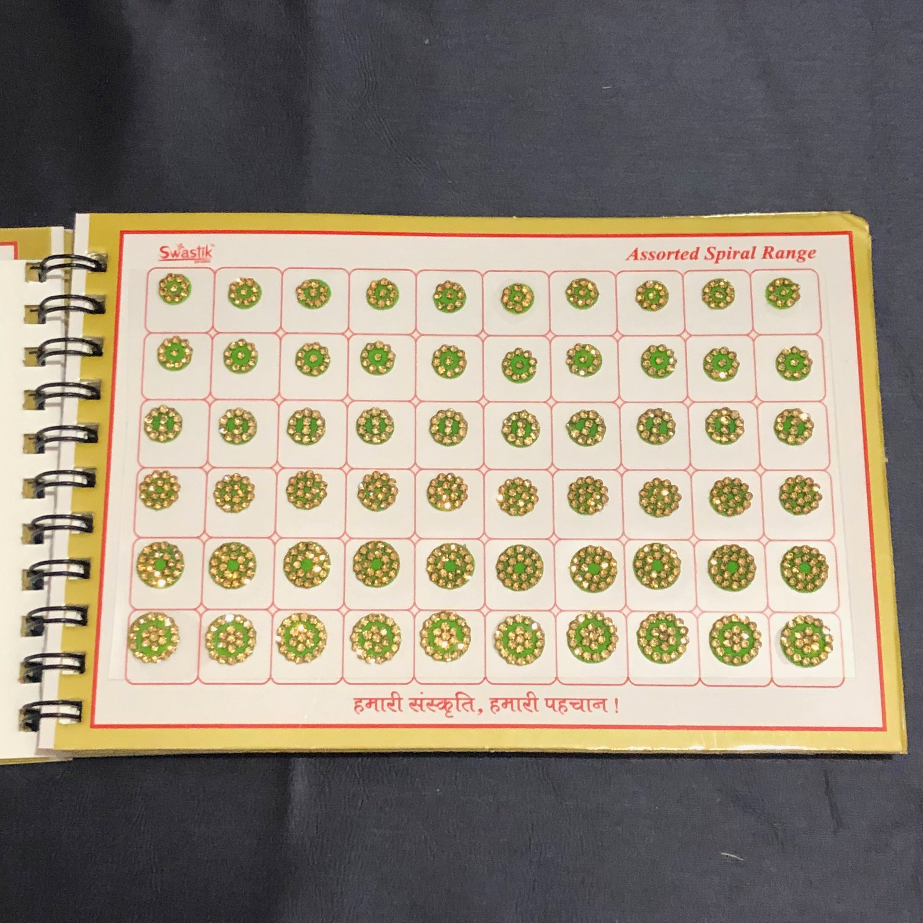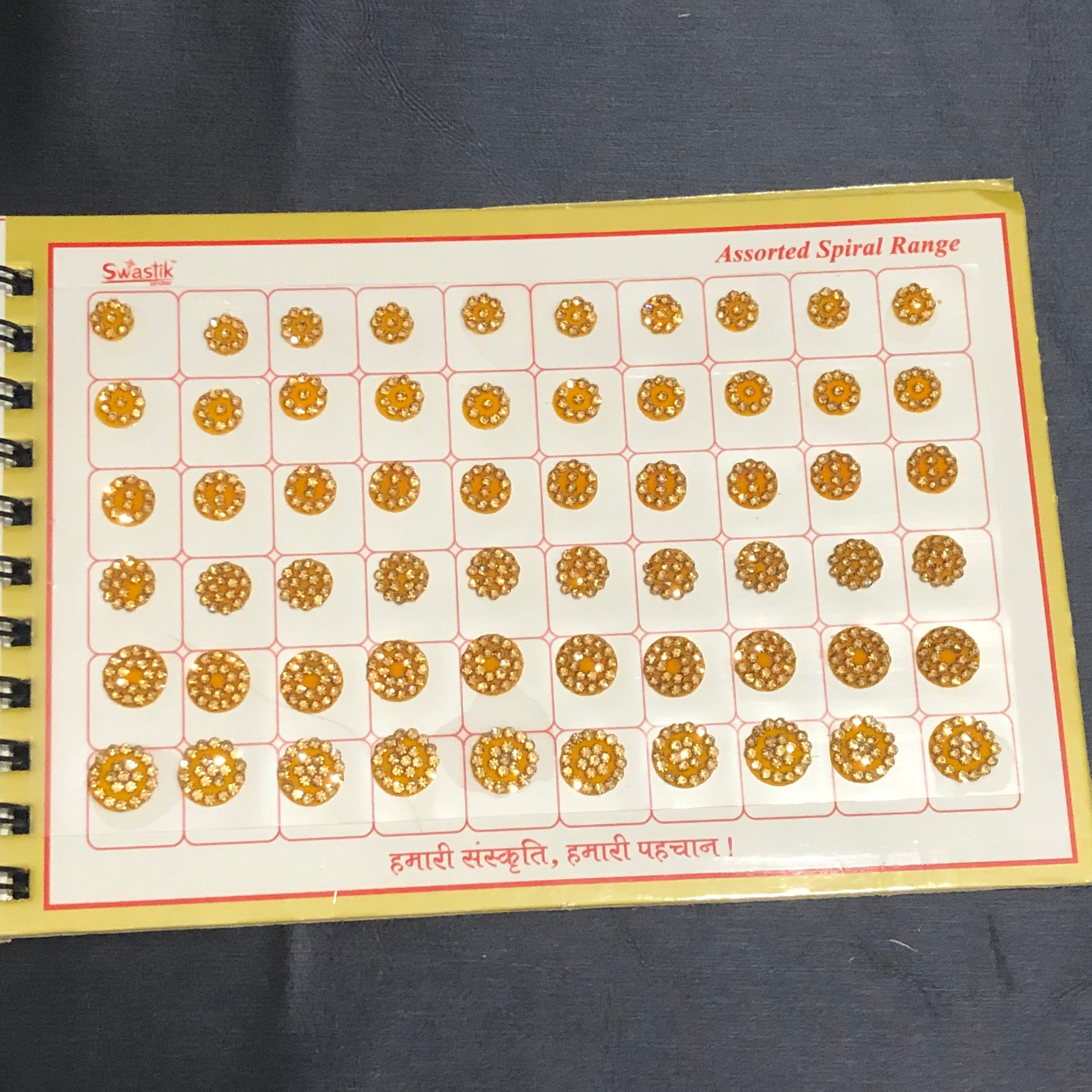 Swastik Golden Swarovski Style FANCY Bindi Book (960 Bindis) - with MIRROR